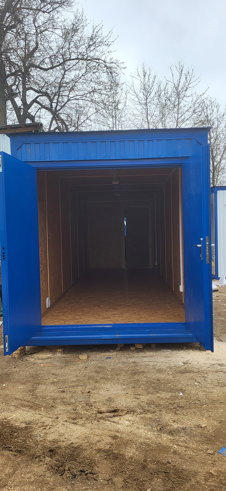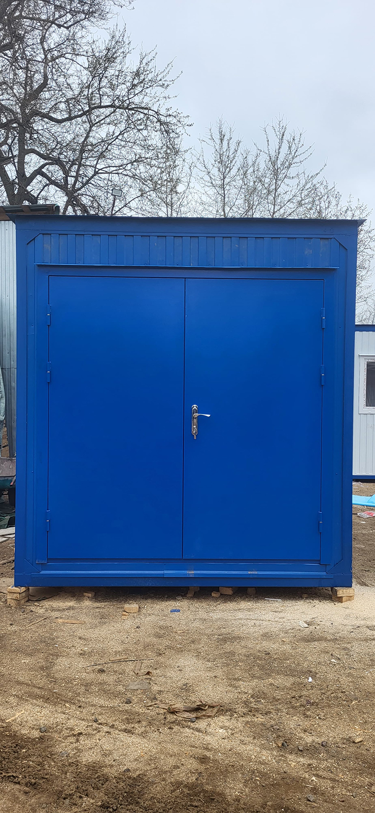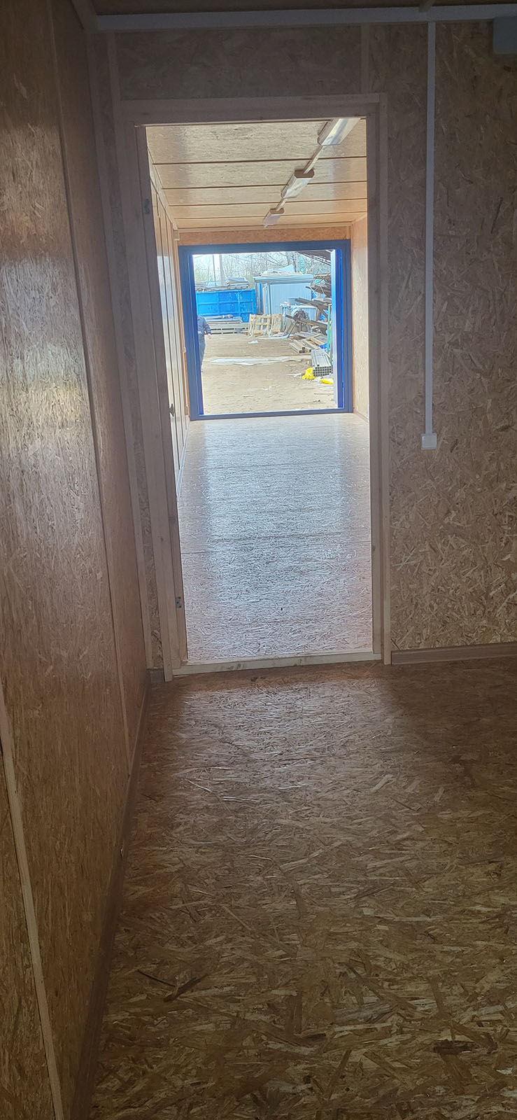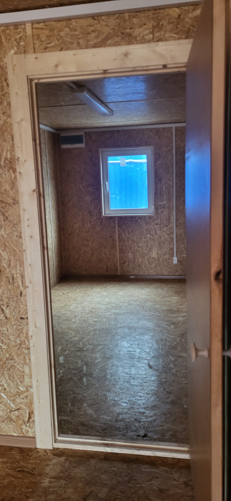 Обшивка внутренняя ОСБ лист, утепление минеральная вата 100, Обшивка наружная - проф лист, межкомнатная дверь оргалит.